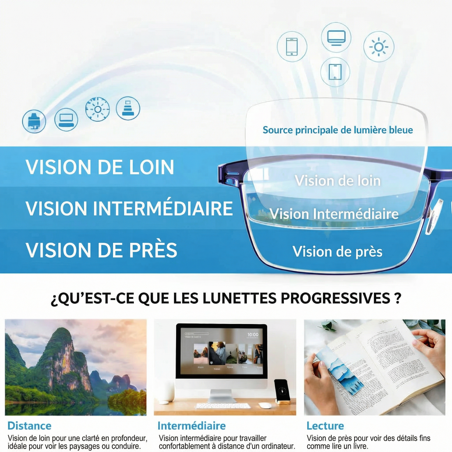 -combinent vision de près, intermédiaire et de loin